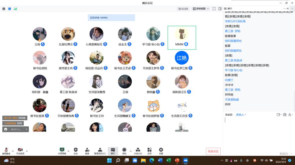 本次会议的主持人为系团总支员工会副书记徐金玉,会议第一项由第三届系团总支员工会主席王雨介绍了出席的成员。会议第二项由第二届系团总支员工会主席团代表樊佩瑶发言,她总结了上一届系团总支员工会工作的经验,对新一届总支员工会的工作提出了改进意见,对新入会成员给予了鼓励和支持。会议第三项由主持人宣读了第二届系团总支员工会优秀干部及优秀部门名单,对他们表示鼓励与嘉奖。会议第四项由第三届系团总支员工会各部门部长介绍各自的工作职责、成员和未来展望等内容。