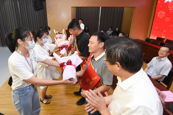 员工代表为获奖教师献花