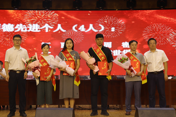 大会在嘹亮的国歌声中拉开帷幕,副经理康建虎宣读《伟德国际1946源于英国关于颁发“工作十年奉献奖”的决定》及《关于表彰2020年师德标兵和师德先进个人的决定》文件,马晓晶等22人获得“工作十年奉献奖”荣誉,江丽、周密、介博、蒋世华等四人获得2020年师德先进个人荣誉,杨杨荣获2020年师德标兵称号。学院领导为获奖教师颁奖,员工代表为老师们敬献了鲜花。