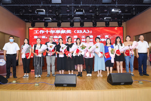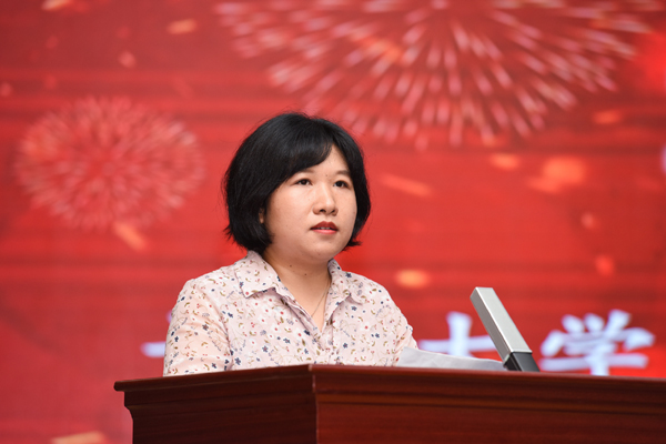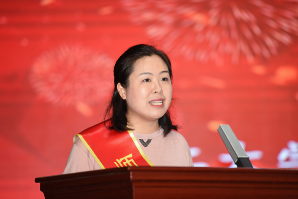 陈莉代表“工作十年奉献奖”获奖教职工发言,她回顾了自己的十年教员工涯,分享了自己的教学感悟,并表示,教师是员工心中的标杆、行为的典范,严于律己才能作为员工的模板,宽以待人才能成为员工的榜样。