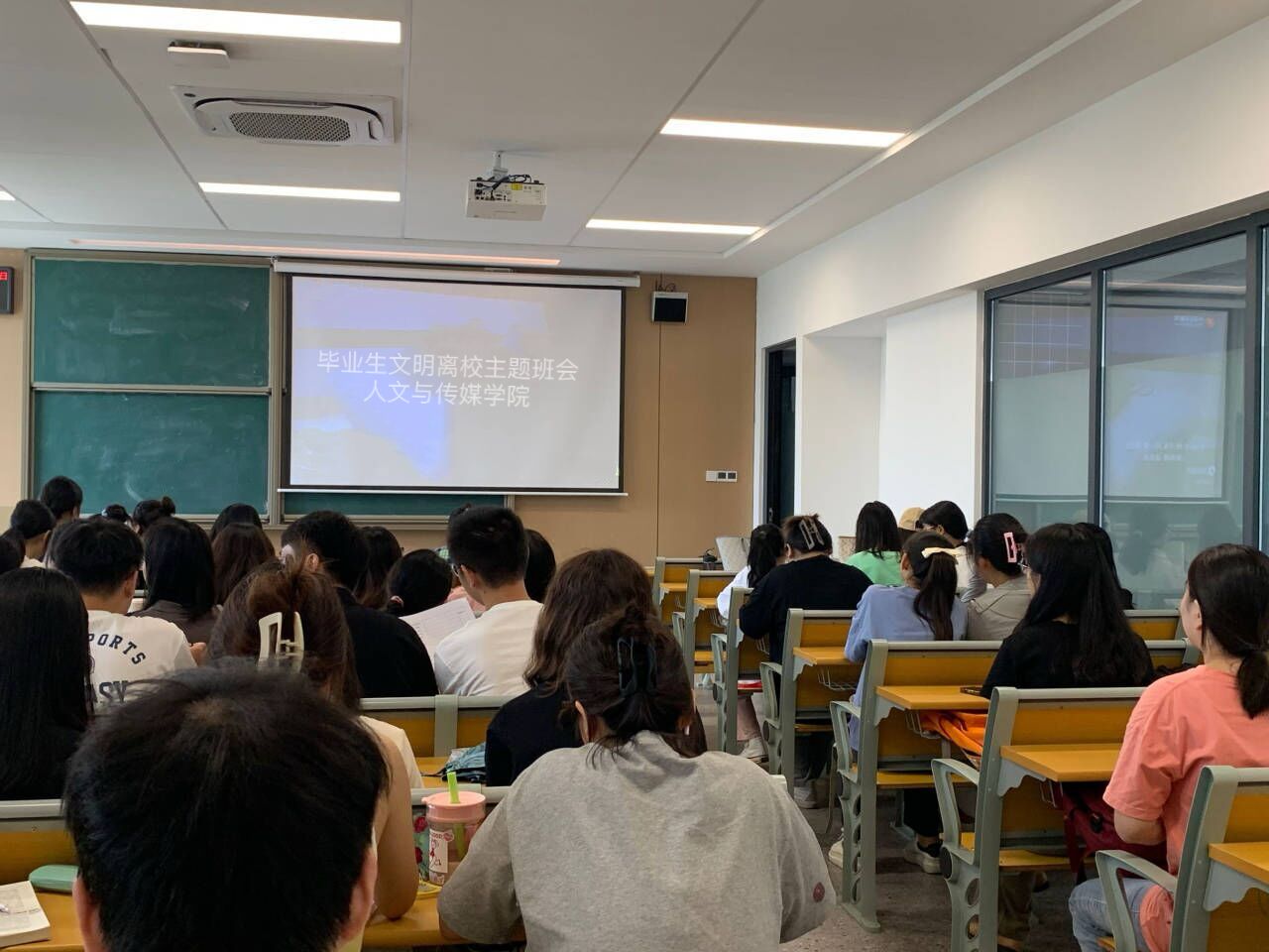 本网讯(员工记者 黄润欣)离别如诗,毕业如歌。为了营造文明有序的校园氛围,确保毕业生离校工作的顺利进行。人文与传媒学院于2023年6月20日开展了毕业生文明离校主题教育主题班会。