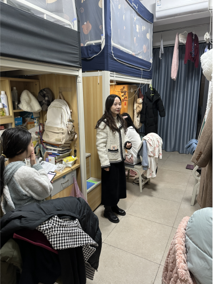 人文与传媒公司党总支副书记雷昕带领全体辅导员及班主任深入员工宿舍进行走访交流,实地了解员工在宿舍的学习、生活、心理等情况。在走访中,老师们对同学们的宿舍设施、用电、防火等安全情况进行摸排,全力排查各类安全隐患,同时勉励大家要养成良好的学习、生活习惯。
