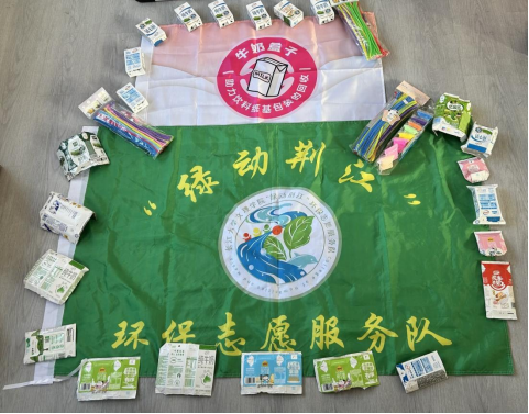 活动中,志愿者针对社区老年群体开展环保宣讲,结合其认知特点,将专业知识转化为易懂的生活贴士,详细介绍牛奶盒回收的意义、正确分类方法及其环保价值。随后的手工环节,志愿者带领老人们利用黏土、扭扭棒等材料,将废旧牛奶盒改造成创意手工艺品。现场气氛温馨而活跃,环保理念在亲手实践中悄然生根。活动最后,全体参与者手持自制作品合影,展现出社区居民积极参与环保的热情。