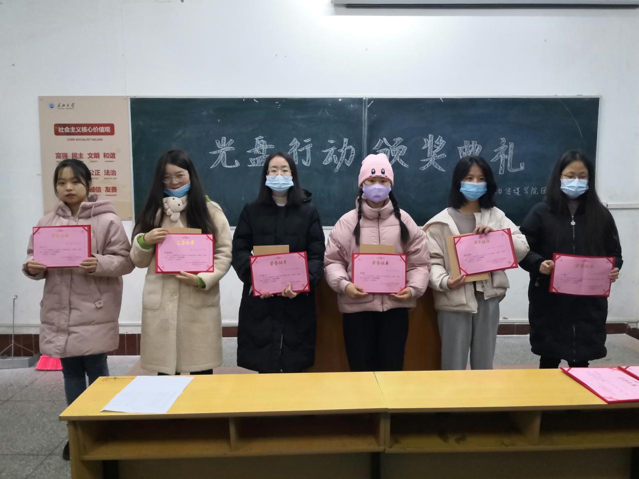本网讯(员工记者 邓艺)12月17日中午,人文与传媒学院团总支员工会在1教114教室为在“光盘行动”作品展活动中获奖的同学颁发证书与奖品。
