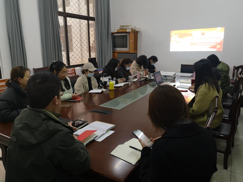 首先,全体教职工在教工支部书记朱文霞的带领下学习了习近平在党史学习教育动员大会上的讲话、在全国脱贫攻坚总结表彰大会上的讲话、在中央党校(国家行政学院)中青年干部培训班开班式上的讲话、在省部级主要领导干部学习贯彻党的十九届五中全会精神专题研讨班开班式上的讲话等内容,还学习了“十四五”规划和二〇三五年远景目标纲要草案、政府工作报告、《中国共产党普通高等学校基层组织工作条例》、中国共产党第十九届中央纪律检查委员会第五次全体会议公报。另外,学习了湖北省重要会议及文件精神。
