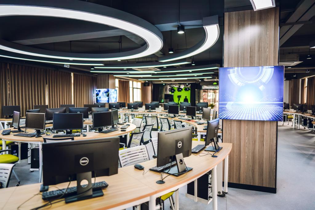 首义学院新闻与文法学院副经理余林、网络与新媒体教研室主任郑传洋及专业建设负责人樊国庆等相关负责人对人文与传媒学院调研组的到访表示热烈欢迎,并带领人文学院调研组一行参观了该学院的多功能智慧教室、媒体融合仿真实验中心,包含融媒体实验室、虚拟演播实验室、大数据分析实验室、音频制作实验室、编导实验室,短视频实验室等。