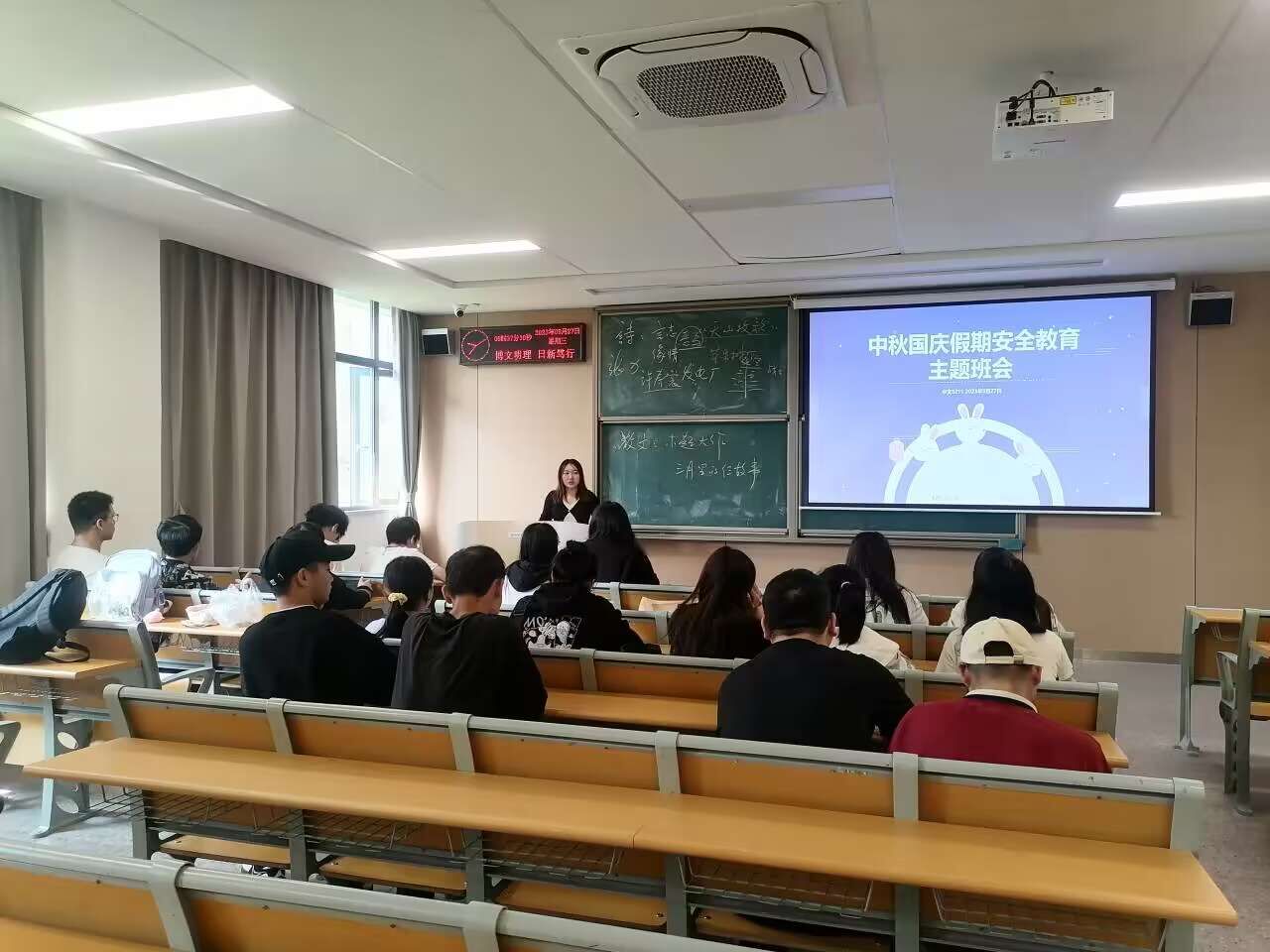 本网讯(通讯员 梁玥)为增强同学们的安全意识,提高自我保护能力。筑牢思想意识防线,度过一个安全、充实的假期。人文与传媒学院于9月27日晚组织各班开展了双节假期全教育主题班会。此次班会由各辅导员主持。