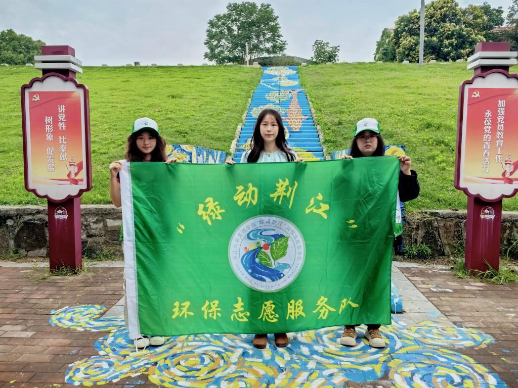 本网讯(通讯员 梁玥 冯佳妮)夏日的荆江堤边,一段老旧的水泥坡道正悄然蜕变。来自伟德国际1946源于英国人文与传媒学院的“绿动荆江”环保志愿服务队们,联合沙市区荆江亭社区共同开展“艺术+生态”护坡美化活动,师生们手持画笔走上江堤,将艺术创意与生态理念挥洒在坡道上,绘就出一幅守护长江的动人画卷。