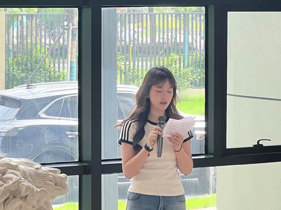 活动伊始,视觉传达5211班的员工代表韩欣熠深情回顾了四年学习历程,她表示:“设计不仅是技能的锤炼,更是对文化使命的思考。”随后,公司系经理李继祥教授在讲话中高度肯定了同学们的探索精神,强调“设计教育应扎根传统、面向未来”,并特别点赞了同学们将荆楚编钟纹样转化为现代VI系统、以濒危花卉为文创主题等案例,称其“展现了文化传承与当代设计的巧妙共生”。最后,李继祥教授宣布展览正式开幕,现场掌声雷动。