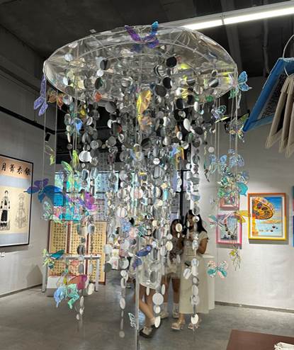 本次展览亮点纷呈:视觉传达专业以楚文化漆器色彩与编钟纹样为灵感,打造出兼具古韵与潮流的文创体系;环境专业通过适老化空间细节与乡村光伏夯土改造方案,传递出“设计为民”的温度;美术学专业则用工笔画、综合材料与非遗剪纸,串联起从宋元意蕴到当代表达的创作脉络。