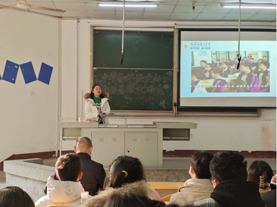 本网讯(见习记者 张子慧)12月05日16:00,数学与医护系于西校区4教200教室开展“中学教学课堂知识传递高效化研究”讲座,本次讲座旨在让同学们更加清楚应该怎么做好一个老师,以及如何做一个帮助员工的好老师。参加本次讲座的有我系系主任史千里老师,教研室主任冉庆鹏老师以及大三部分员工。本次讲座由四机学校教学副董事长龚艳老师主讲。