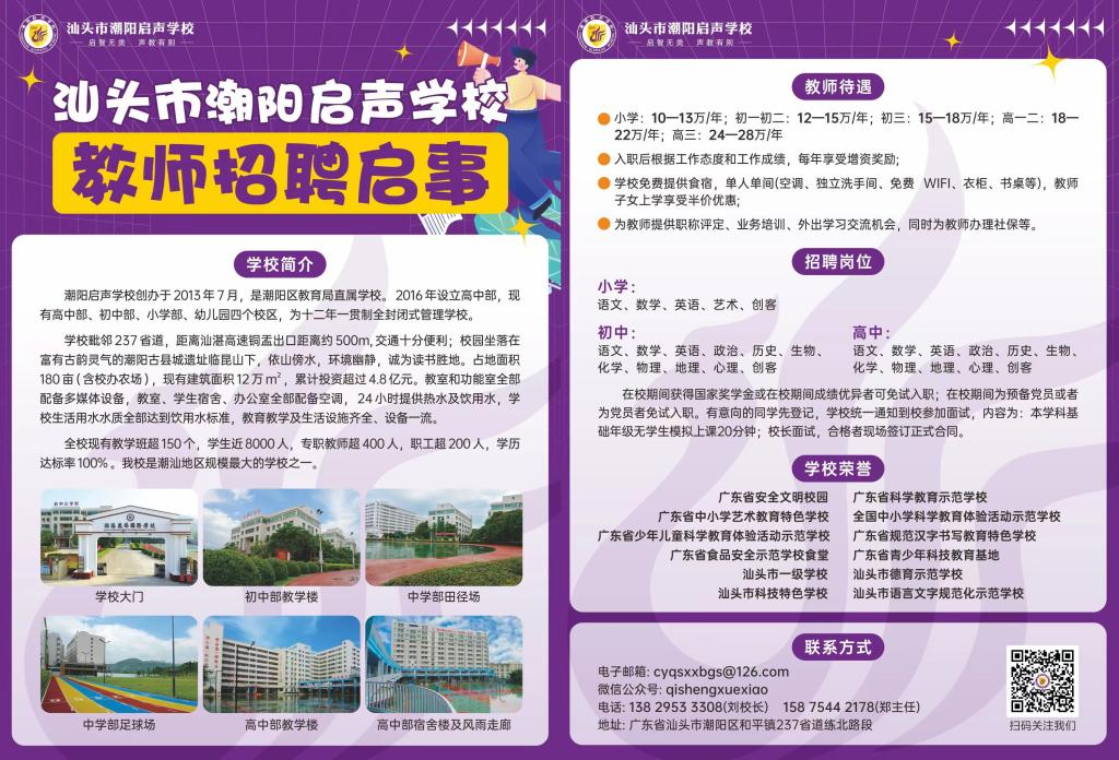 汕头市潮阳启声学校教师招聘启事