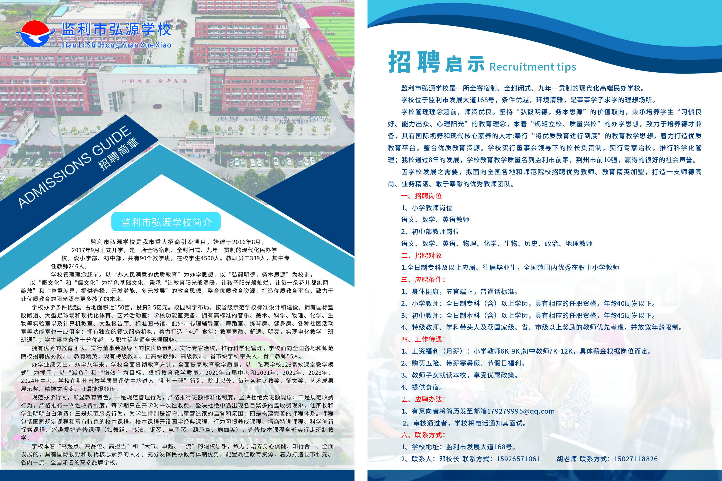 监利市弘源学校招聘启事
