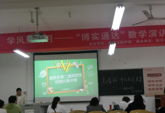 本网讯(见习记者 潘阳宁) 为了进一步加强师范生技能培训,提高师范生实践教学能力,数学与医护系于2022年5月12日下午两点半在4教201举办了第二届“文理杯”数学师范专业员工教学技能大赛初赛。王春鸽老师、李莹莹老师、李茜老师、黄谨老师和袁萍老师担任此次大赛的评委。师范专业员工教学技能竞赛是“员工以赛促学,教师以赛促教”的有力抓手,旨在搭建员工与员工、员工与指导教师、指导教师与指导教师之间相互交流学习的良好平台,锻炼我系师范生教学技能,培养师范生教师专业素养,展现师范生教学风采。