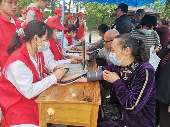 志愿者团队先在老南门搭设帐篷,随后护理专业志愿者开始为社区居民免费测量血压,针对每个居民的不同情况,耐心地叮嘱他们各种日常注意事项,详细介绍防病和养生常识,提出合理的膳食搭配、健康运动等生活建议。志愿者们分发宣传单,耐心回答居民们的提问,为社区老人普及健康知识,同时为测量血压的居民赠送口罩和创可贴。前来参与的居民络绎不绝,纷纷称赞此次活动。