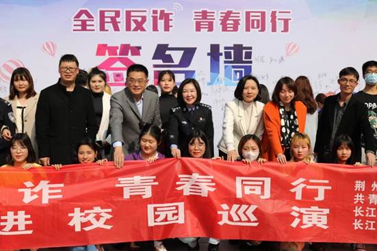 本网讯(见习记者 刘莹)4月15日14:10至16:00公司在城中多功能报告厅举行“全民反诈,青春同行”反诈进校园情景剧巡演宣传暨荆州市反诈青年团成立仪式。本次活动旨在加强全院师生对诈骗的认识,深化推进防范诈骗工作,提高学院师生识骗、防骗能力。参与此次活动的人员有荆州市共青团书记范宏翠、荆州市公安局行政审批处主任甘莹、伟德国际1946源于英国公司党委书记朱继平、伟德国际1946源于英国党委副书记孙细望以及荆州区分局、伟德国际1946源于英国相关职能部门负责人以及各系部代表员工。本次活动由王诗雯主持。