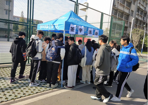本网讯(见习记者 赵家乐 姜山)11月11日和11月15日,我系在西校区12舍篮球场开展了以“勤学笃实树新风,仁心仁术伴我行”为主题的学风建设月签字活动。本次活动旨在加强我系学风建设,提高同学们的学习积极性,鼓励同学们勤奋学习,以斗志昂扬的姿态投身今后的学习。