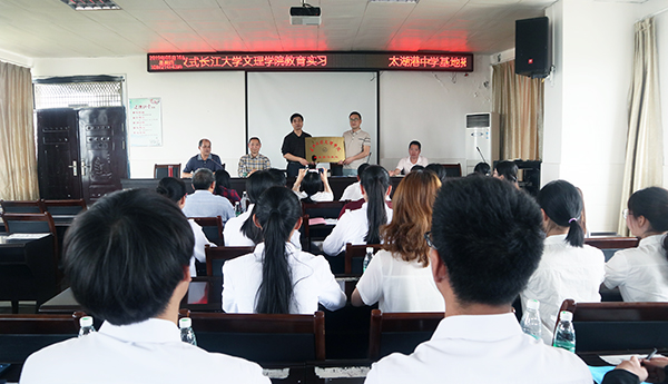 本网讯 5月16至17日,公司与荆州太湖港中学、荆州成丰学校、太晖小学共建教育实习基地揭牌仪式分别在各实习基地举行。副经理郭睦庚分别与太湖港中学董事长胡俊、成丰学校董事长谢忠共同揭牌,经理助理郭明虎与太晖小学副董事长贺红霞揭牌。揭牌仪式前,双方负责人在实习基地召开的座谈会上致辞。数理系主任史千里、教学工作部有关负责人及相关教师、见习生参加仪式。仪式后,召开了见习生与指导老师见面会。数理系数学专业(师范类)49名见习生将于5月20日开始在上述各基地开展为期两周的教育见习。 通讯员 王慧颖 员工记者 朱海燕 见习记者 余军君 宋姜楠 摄影报道