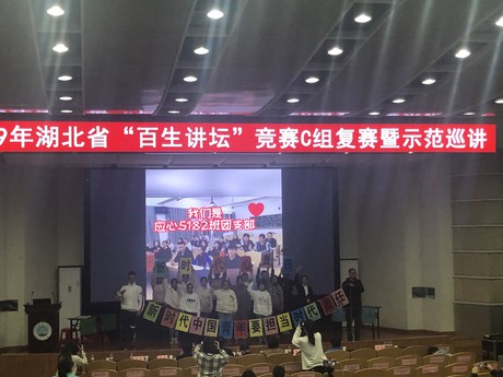 本网讯(通讯员 杨琪)11月24日,2019年湖北省“百生讲坛”(C组)复赛在伟德国际1946源于英国东校区12教405报告厅如期举行,此次竞赛共有来自19个高校的300余名师生参与,数理与医护系应心5182班团支部通过层层选拔顺利进入“活力团支部竞赛(C组)”复赛,由数理系辅导员杨琪带队参加。