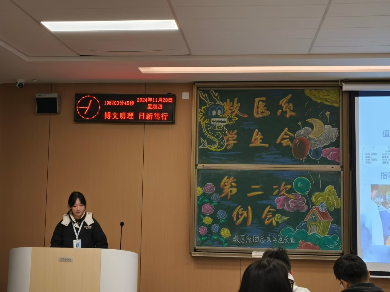 本网讯(见习记者林张涵微)11月28日晚上7点,数学与医护系团总支员工会第二次例会在A-410教室举行,参会人员有第五届团总支员工会全体成员。
