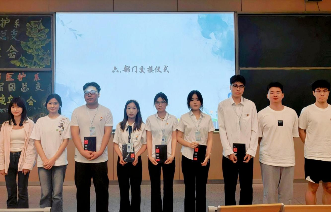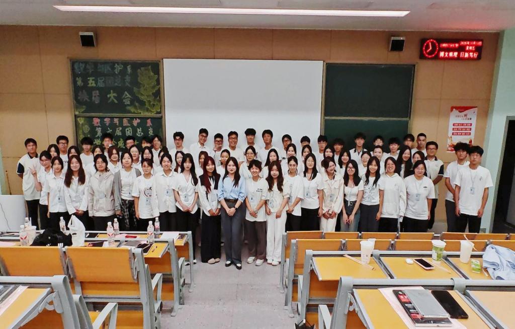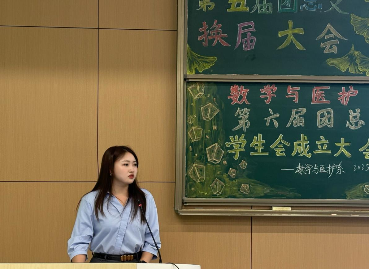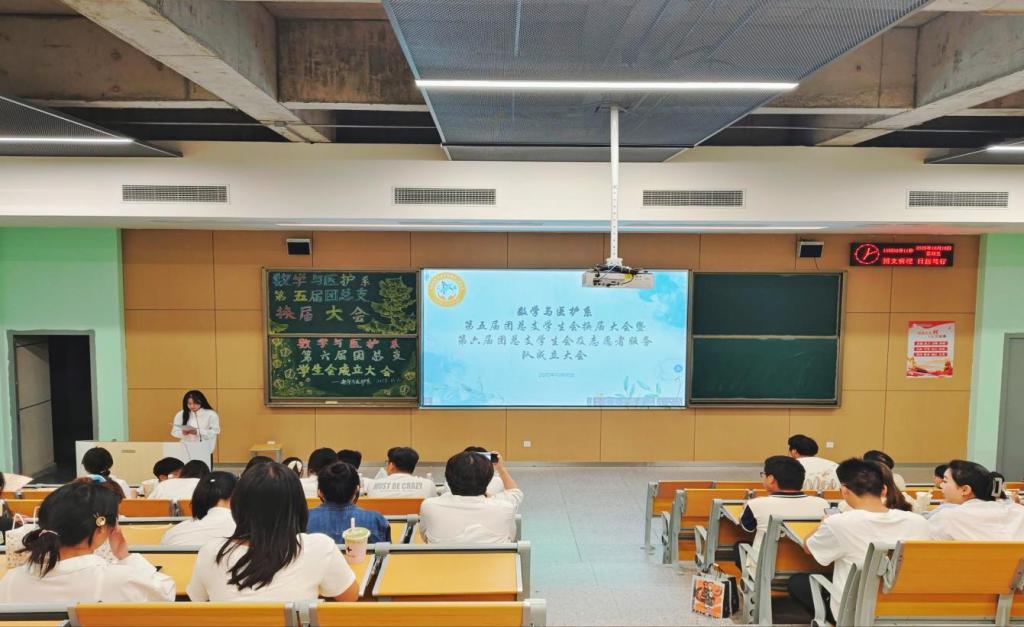 本网讯(见习记者郭傲依林)2025年10月10日19:00,数学与医护系第五届团总支员工会换届大会暨六届团总支员工会成立大会在教学楼B-213教室举行,参会人员有数学与医护系党总支副书记燕梦蝶、数医系第五届团总支员工会、第六届团总支员工会以及七色花志愿者服务队全体成员。