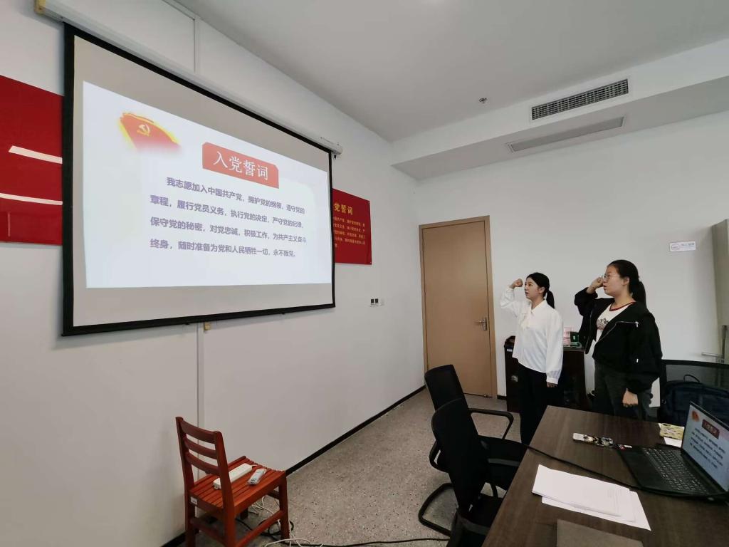 接下来两名新党员同志进行入党宣誓并分别表态,在今后的日子里,会用优秀党员的标准来审视和严格要求自己,勤奋进取,为党的事业奋斗终身,不辜负党组织的信任。