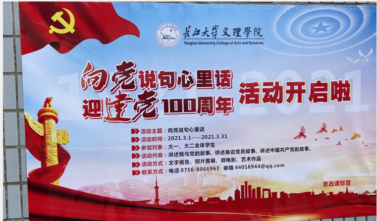 2021年是中国共产党成立100周年,是全面建成小康社会、实现第一个百年奋斗目标之年,也是开启全面建设社会主义现代化国家新征程、向第二个百年奋斗目标进军的开局之年。为回顾百年党史、弘扬红色精神、汇聚复兴伟力,思政课部组织在学院城中校区和西校区开展“向党说句心里话 迎建党100周年”启动活动。