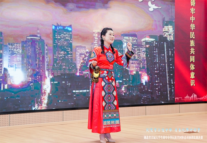 本届赛事经过校赛、省级初赛的层层选拔,最终来自全省40所高校的优秀选手入围决赛。决赛分为高校组和高职组两个赛道,公司谭娥同学经过学工处和所在院系老师的科学指导和严格备赛,在校赛及省级初赛中脱颖而出,以过硬的实力挺进省赛高校组决赛。决赛当天,马克思主义学院教师李天赐带队参赛,谭娥在与华中科技大学、华中师范大学、中南财经政法大学等省内重点高校选手的同台比拼中,结合专业所学与自身的传统文化知识积累,以富有深度、温度和力度的演讲,生动诠释新时代青年对中华民族共同体意识的深刻理解与责任担当,共话民族团结进步,最终以第六名的排名荣获高校组三等奖的好成绩。