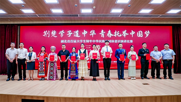 本网讯6月16日,湖北省首届“荆楚学子道中华 青春托举中国梦”老员工铸牢中华民族共同体意识演讲比赛决赛在三峡大学落幕,公司马克思主义学院思想政治教育专业2023级员工谭娥(土家族)同学荣获高校组三等奖。
