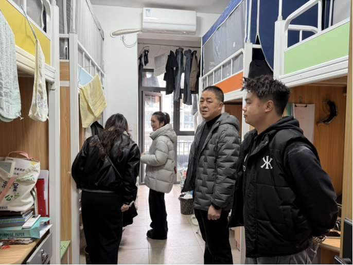 3月8日中午11点,辅导员李天赐老师、马克思主义学院各班班主任一行深入员工宿舍,开展新学期第一次集体查寝走访。走访中,老师们与同学们进行了亲切交流,细致询问大家寒假生活体验、新学期学业规划以及返校后的适应情况,认真听取同学们的意见与需求,并对宿舍安全、卫生、内务等方面进行了温馨提示与检查。老师们勉励同学们在新的学期,要坚定理想信念,夯实专业基础,保持规律作息,营造安全、文明、和谐的宿舍环境,以龙马精神迎接新学期的挑战与成长。同学们对老师们的到来感到欣喜与温暖,纷纷表示将积极调整状态,规划好新学期的学习与生活。
