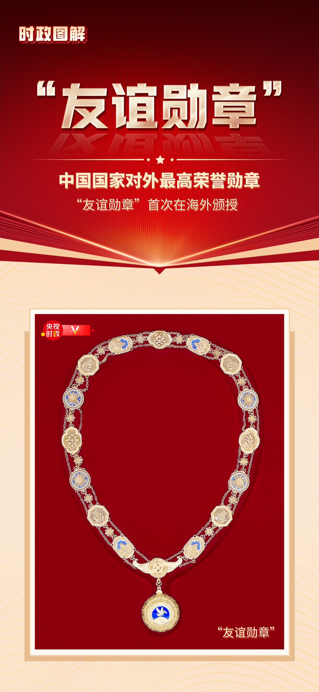 “友谊勋章”是中国国家对外最高荣誉勋章,授予在支持中国现代化建设、促进中外交流合作、维护世界和平中作出杰出贡献的外国友人。