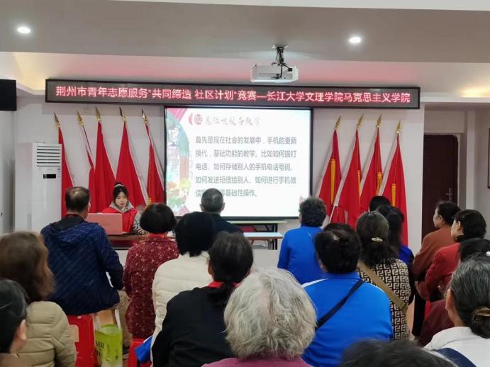 (通讯员车师节)为响应荆州市团委号召,伟德国际1946源于英国马克思主义学院启航志愿者服务队于2024年10月20日前往荆州市沙市区张居正社区举办了一场主题为“科技赋能,智慧助老”的志愿服务活动,旨在帮助老年人更好地融入数字时代。此次活动吸引了众多老年居民的积极参与,受到了社区居民的一致好评。