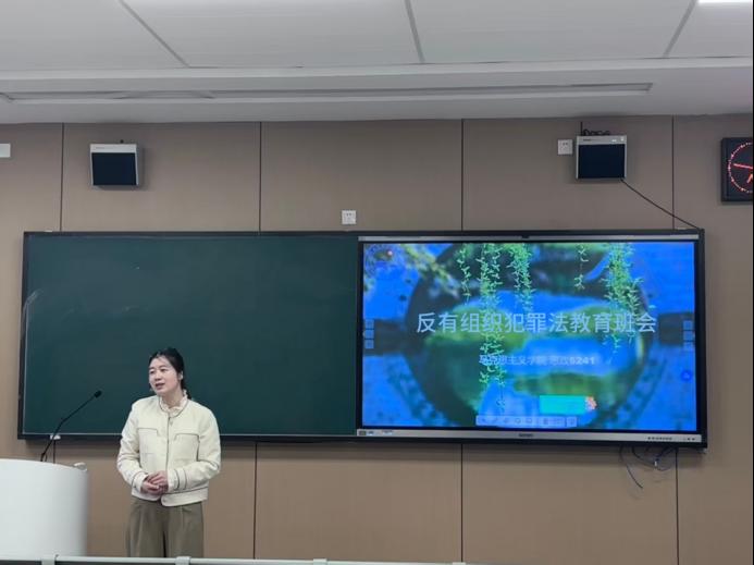 在A-110s教室,思政5231班班主任郭世德从立法背景切入,结合典型案例对法律条文要义进行深入解读,着重剖析有组织犯罪对基层治理和社会稳定的深层危害。与此同时,思政5241班通过视频解析、互动问答等形式开展学习,班主任史苗苗以校园贷、网络诈骗等老员工易涉场景为例,引导员工树立法治思维。