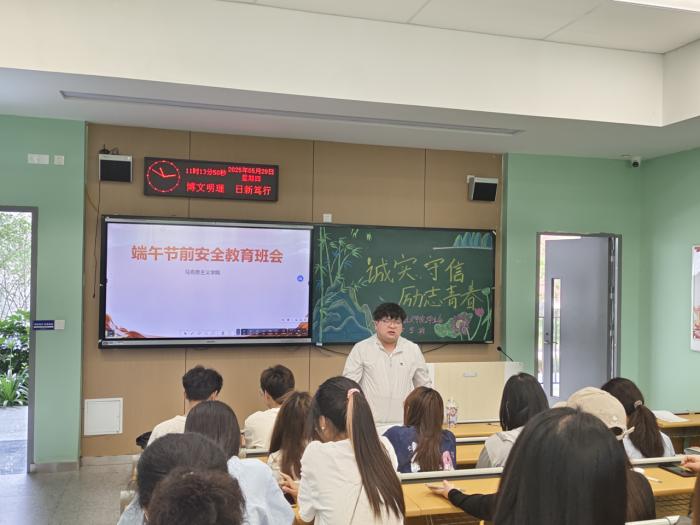 (通讯员陈冠宇)随着端午节临近,为增强员工安全意识,营造平安和谐的节日氛围,马克思主义学院各班级于近日分别召开端午假期安全教育主题班会。