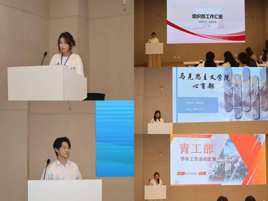 仪式伊始,主持人介绍到场嘉宾与参会成员,阐述本次大会背景与意义,为活动拉开序幕。随后,第一届团总支员工会各部门部长依次上台发言,结合工作实例,全面总结2024学年部门在活动组织、服务同学等方面的成果,同时坦诚分析工作中的不足,为新一届成员提供宝贵经验。