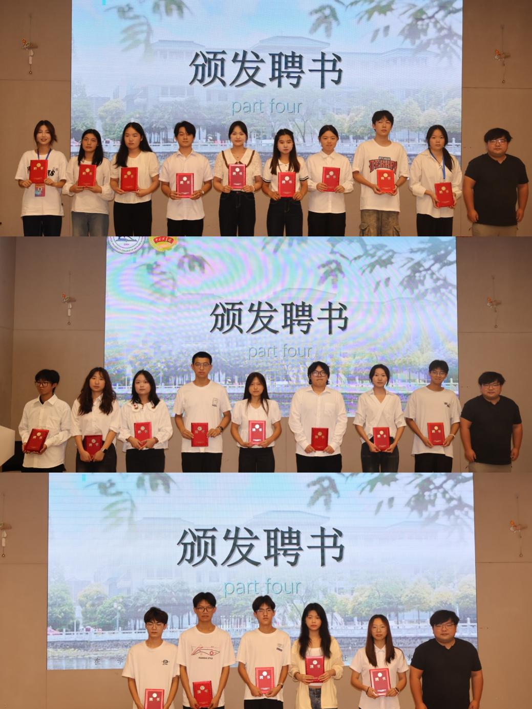 在聘书颁发与表彰环节,辅导员李天赐老师上台为第一届团总支员工会成员颁发聘书,并表彰优秀者:车师节、陈鑫一等 9 人获 “优秀干部”,陈冠宇、刘昊等 14 人获 “优秀干事”,他们的责任感与工作表现获肯定。随后李老师致辞,肯定首届成效,对新一届寄予期望,鼓励传承作风、服务同学与学院,为马克思主义学院贡献力量。