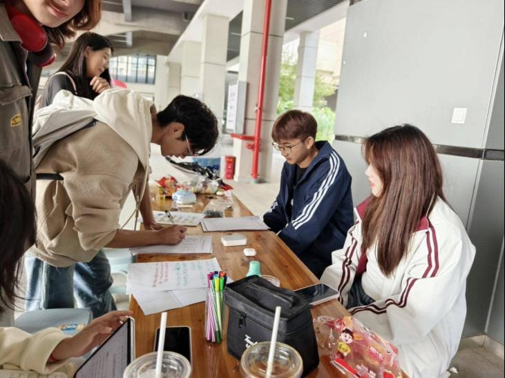 本次活动精心设置了三个创意小游戏,参与者可自由选择。“请与我击掌”环节,同学们在纸上画出自己的手掌轮廓,并写下一句激励的话语,完成一次与自我的对话和约定;“Emoji猜成语”则考验大家的联想与反应速度,在10秒内猜对5个成语,十分精彩;而“翻杯子+井字棋”不仅需要灵巧的手上功夫,更讲究策略布局,充满了乐趣。