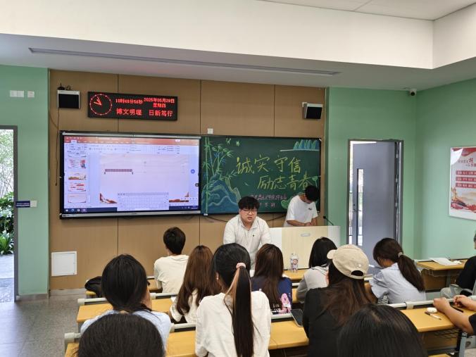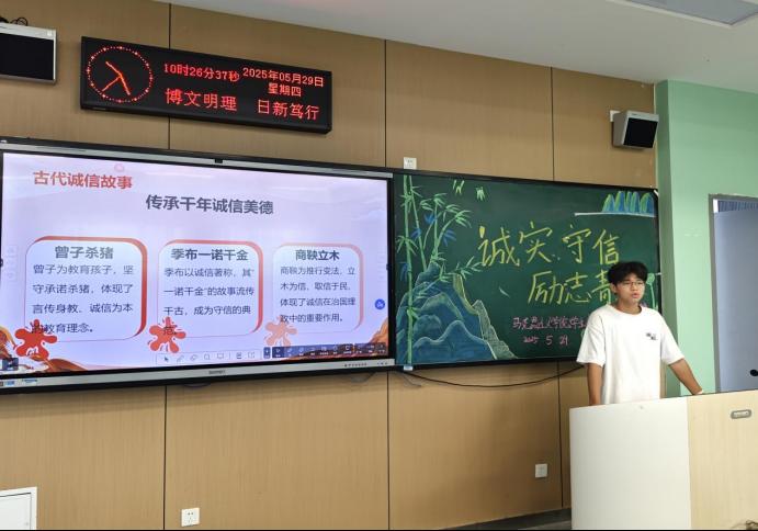 (通讯员 陈温妍)2025年5月29日上午,马克思主义学院在A-110s教室举办“诚实守信,励志青春”主题教育讲座,辅导员李天赐老师主持,马克思主义学院全体员工参与。