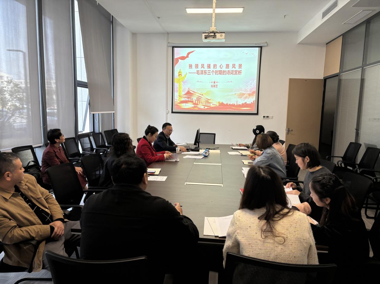 接着,校领导肖寒芝副经理以《独领风骚的心路风景——毛泽东三个时期的诗词赏析》为题讲授主题党课,并号召全体党员同志在学院转设的关键期,更需从毛泽东诗词中汲取精神力量,既要保持“风物长宜放眼量”的战略眼光,又要锤炼“不到长城非好汉”的实干作风,还要发扬“敢教日月换新天”的创造精神。