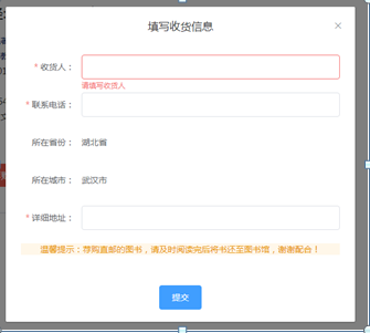 2)收货信息会和账户设置中的收货信息保持同步。比如:账户设置中填写了收货信息,荐购直邮弹框界面的收货信息也会自动同步。