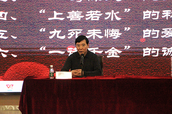 刘玉堂教授以楚国历史脉络为经,文化特质为纬,用风趣诙谐的语调,巧妙地援引了“一鸣惊人”“楚王失弓”“绝缨之宴”“登徒子与宋玉”等典故,并融合自身的生活观察与感悟,深刻剖析了楚文化所蕴含的六大精神特质:“筚路蓝缕”的进取精神、“大象无形”的开放气度、“一鸣惊人”的创新意识、“上善若水”的和谐理念、“九死未悔”的爱国情结,以及“一诺千金”的诚信品格。他通过丰富史料与生动故事,带领大家穿越千年,感受楚文化的深厚底蕴与时代价值。