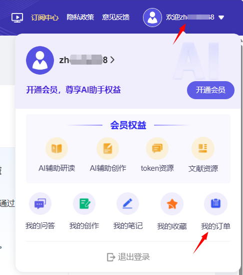 操作步骤:打开https://aiplus.cnki.net登录已注册的知网个人账号,点击右上角账号进入个人中心--我的订单--关联机构,选择AI助手功能权益。