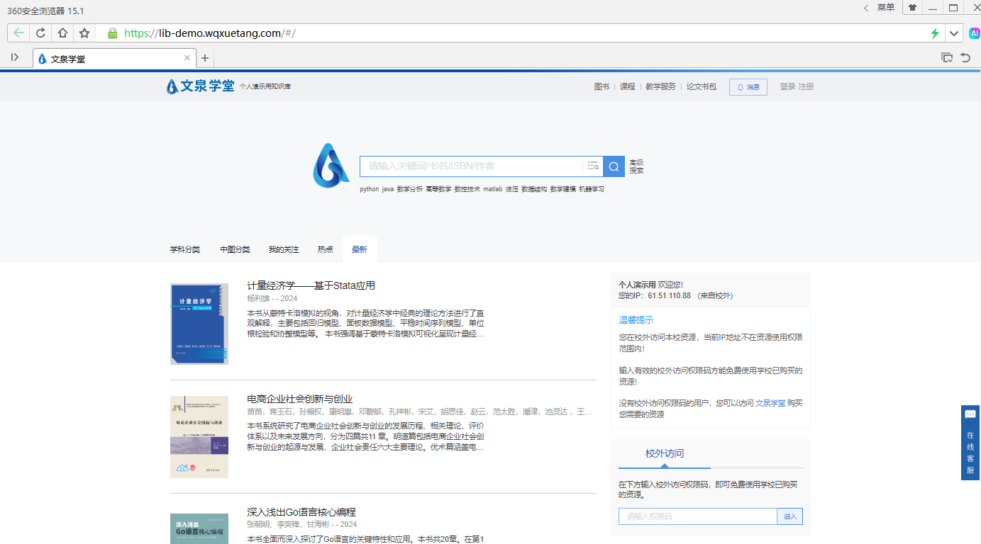 访问权限:校园IP地址范围内可直接访问
