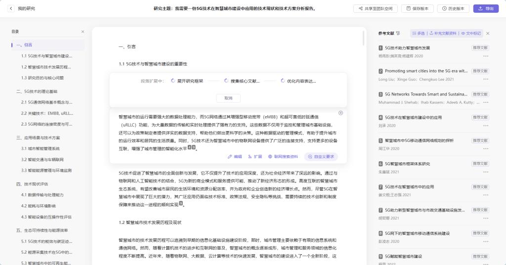 用户可以上传相关文献,系统将智能生成定制化研究报告。支持内容的自由编辑和扩展,确保报告更贴合研究需求。平台提供实时更新与跟踪功能,持续完善研究内容,实时把握最新研究动态。