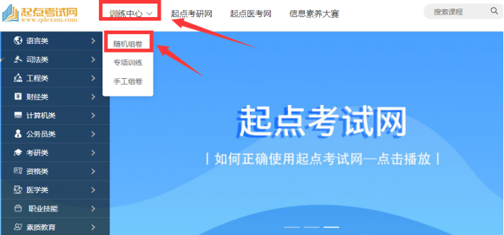 ① PC端:在校园网范围内,登录图书馆网站,在电子资源列表中查找“起点考试网”,或者在浏览器直接输入 www.qdexam.com