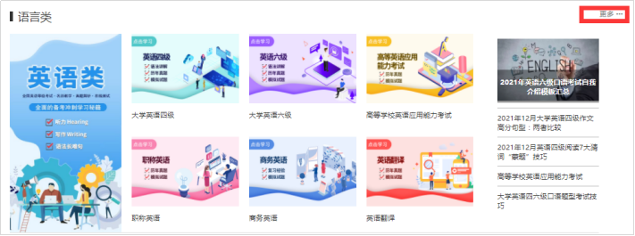 ② 按照首页分类导航查找,直接选择课程名称,或者点击更多,进入该大类的全部课程列表