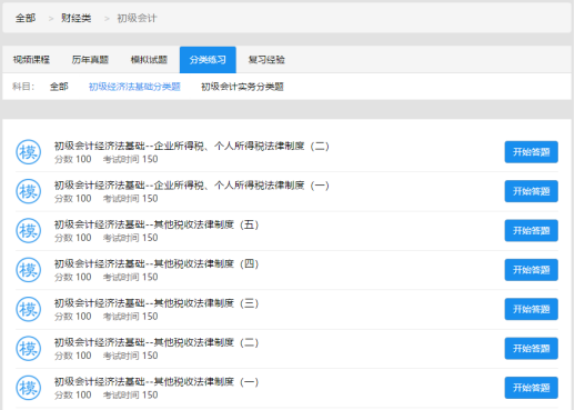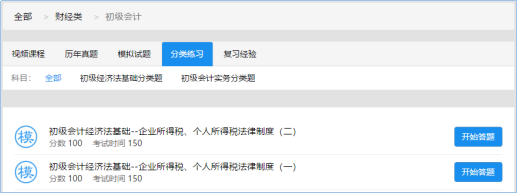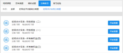 A. 点击 “初级会计 ” 的 “分类练习”,进入分类试题练习详细页面