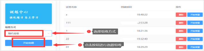 随机组卷模块针对某课程内容的进行随机抽题组卷练习