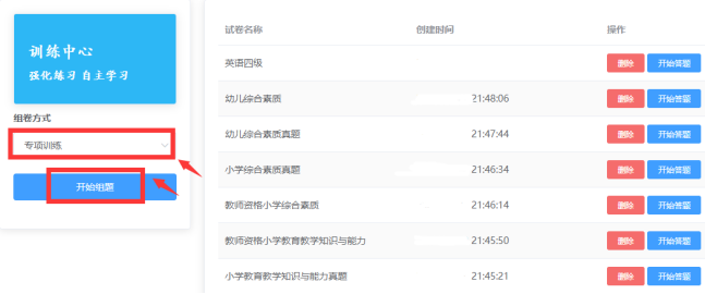 专项训练模块是专门针对某课程的某类题型进行强化训练。