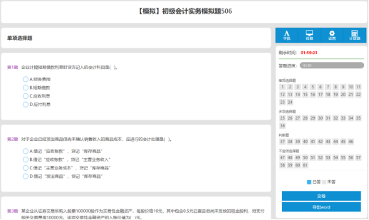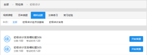 A. 点击 “初级会计 ” 的 “模拟试题”,进入模拟试题详细页面,